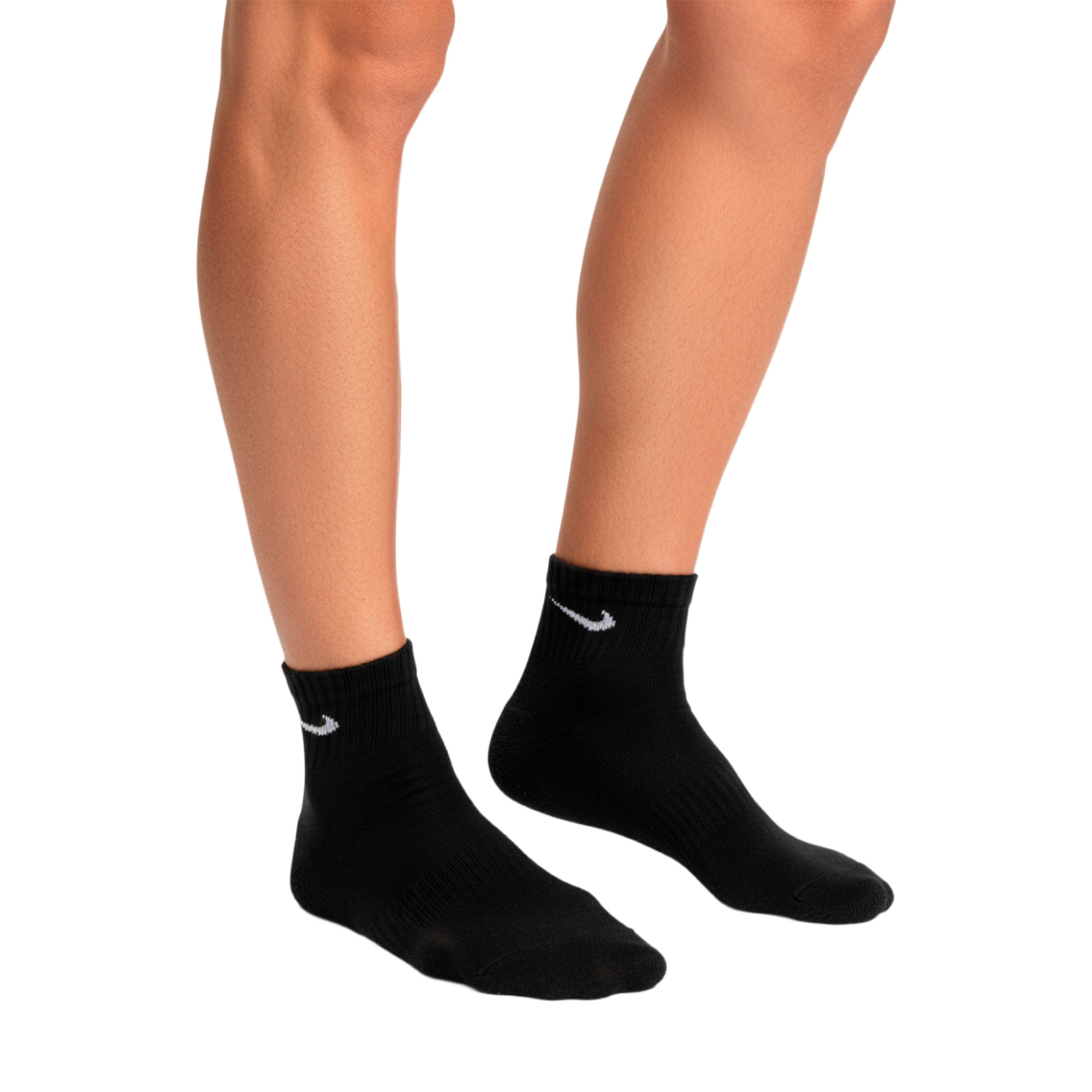 Мужские укороченные носки Nike Value Cotton Quarter станут отличным вариантом для повседневного ношения. Современное сочетание материалов помогают сохранить комфорт на целый день. Классический черный цвет носков отлично сочетается с любой обувью. Фирменная технология Dri-Fit отводит влагу, сохраняя кожу сухой во время физической активности. Модель выполнена из хлопкового материала в сочетании с прочным полиэстером. Носки не растягиваются и не теряют формы со временем, сохраняя свой превосходный внешний вид. Усиленные пятка и мысок надежно защищают места, подверженные наибольшему износу. Удобные резинки не передавливают ногу сохраняя ощущение легкости и комфорта. Анатомическая форма носков плотно садится по форме ноги. За ними легко ухаживать и их можно стирать в стиральной машинке. Особенности и преимущества: